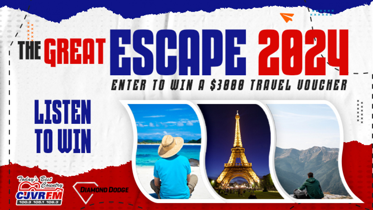 Escape the cold and enter The Great Escape! On Friday March 1st, 105 CJVR, Saskatchewan’s Beach Radio and Diamond Dodge will be hosting The Great Escape Party where one lucky VIP will win our GRAND PRIZE, a travel voucher valued at $3,000!!!